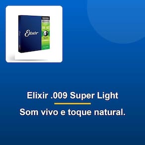 Encordoamento Guitarra .009 Super Light Optiweb Elixir Desbloqueie o som vivo e natural com as cordas Elixir para guitarra com revestimento Optiweb. Essas cordas premium oferecem o timbre vivo e toque natural que você ama, sem sacrificar a durabilidade e vida útil que você espera de uma corda Elixir. Com o revestimento Optiweb, você obtém todos os benefícios de uma corda premium, incluindo uma vida útil mais longa e menor manutenção. Além disso, o revestimento Optiweb cria uma superfície suave ao toque, fazendo com que as cordas sejam mais fáceis de tocar e mais confortáveis para as mãos.