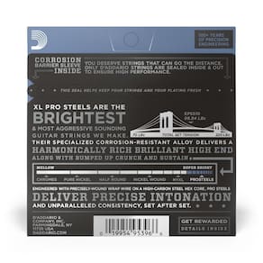 A D Addario XL ProSteels utiliza uma liga de aço resistente à corrosão altamente magnética, que proporciona um timbre super-brilhante e sem coloridos estridentes. Oferece agudos penetrantes e ricos em harmônicos combinados com graves pronunciados e bastante definidos. Oferece um timbre brilhante e rasgado e possui resistência à corrosão para maior durabilidade da corda. Se você deseja um pouco mais de pegada e sustain, ProSteels é a corda feita pra você|