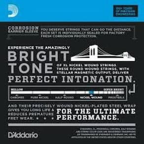 Encordoamento Guitarra Daddario 0.10 Exl110 Corda para guitarra daddario exl110-b 0.10 + corda extra Encordoamento daddario exl110-b 010-046 guitarra As exl110 são as mais vendidas na daddario. Proporcionam uma combinação ideal de timbre, flexibilidade e durabilidade. Um padrão para maioria das guitarras. As daddario xl nickel wound são reconhecidas mundialmente como a escolha dos grandes músicos, entre guitarristas de todos os gêneros e estilos. São feitas de aço banhado a níquel e enroladas com alta precisão ao redor de uma alma hexagonal, resultando em uma corda com inconfundível timbre brilhante e excelente afinação.