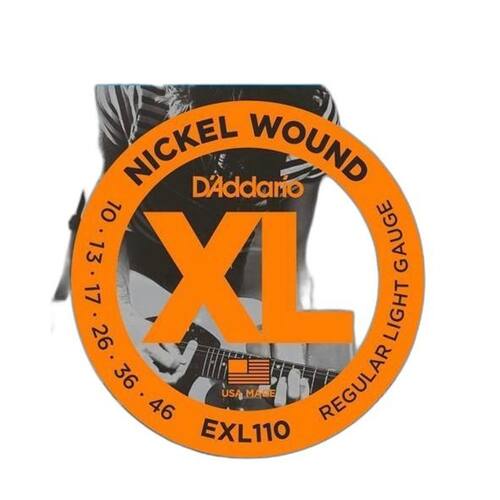 Encordoamento Guitarra Daddario 0.10 Exl110 Corda para guitarra daddario exl110-b 0.10 + corda extra Encordoamento daddario exl110-b 010-046 guitarra As exl110 são as mais vendidas na daddario. Proporcionam uma combinação ideal de timbre, flexibilidade e durabilidade. Um padrão para maioria das guitarras. As daddario xl nickel wound são reconhecidas mundialmente como a escolha dos grandes músicos, entre guitarristas de todos os gêneros e estilos. São feitas de aço banhado a níquel e enroladas com alta precisão ao redor de uma alma hexagonal, resultando em uma corda com inconfundível timbre brilhante e excelente afinação.