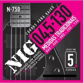 Encordoamento nig para baixo 5 cordas n-750 - 45/130Medidas: 045/.130ContrabaixoEncapadas com níquelAlma hexagonalEscala longaContém 5 cordasPrata sol g .045 1,14mm Roxa ré d .065 1,65mm Verde lá a .080 2,03mm Preta mi e .100 2,54mm Preta si b .130 3,30mm Fornecedor - nig music