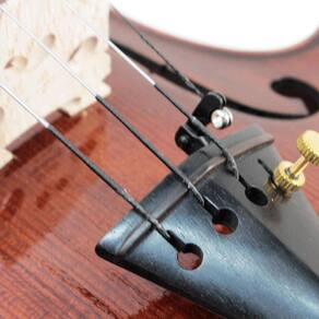 Material: LÁ: Núcleo de aço alemão revestida de alumínio - 0,55mm +Lá reserva RÉ: Núcleo de aço alemão revestida de alumínio - 0,73mm SOL: Núcleo de aço alemão revestida de alumínio - 0,96mm DÓ: Núcleo de aço alemão, revestimento de liga - 1,11mm Fixação: Bola