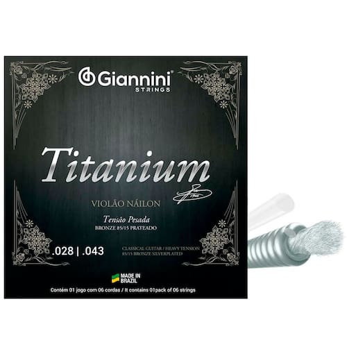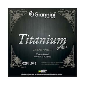 A série Titanium é série para quem quer o som mais puro no seu violão náilon. Revestidas com Bronze 85/15, a Giannini Titanium GENWTA é indicada para quem quer o melhor encordoamento no seu violão náilon, com toque mais pesado.