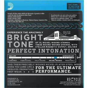 Encordoamento Para Guitarra .010-.046 Xl Nickel Exl110-b D O Encordoamento Para Guitarra D Addario EXL110-B proporciona uma combinação ideal de timbre, flexibilidade e durabilidade. Um padrão para maioria das guitarras. As D Addario XL Nickel Wound são reconhecidas mundialmente como a escolha dos grandes músicos, entre guitarristas de todos os gêneros e estilos. São feitas de aço banhado a níquel e enroladas com alta precisão ao redor de uma alma hexagonal, resultando em uma corda com inconfundível timbre brilhante e excelente afinação. Aplicação:Guitarra Tensão:Leve .010 - .046 com corda extra PL010 Material:Aço niquelado Pesquisa:0,10|010|0.10|10|guitarra|daddario|guitar|encordoamento|encordoamento para guitarra|para guitarra|encordoamento daddario| O Encordoamento Para Guitarra D Addario EXL110-B proporciona uma combinação ideal de timbre, flexibilidade e durabilidade. Um padrão para maioria das guitarras. As D Addario XL Nickel Wound são reconhecidas mundialmente como a escolha dos grandes músicos, entre guitarristas de todos os gêneros e estilos. São feitas de aço banhado a níquel e enroladas com alta precisão ao redor de uma alma hexagonal, resultando em uma corda com inconfundível timbre brilhante e excelente afinação. Aplicação:Guitarra Tensão:Leve .010 - .046 com corda extra PL010 Material:Aço niquelado Pesquisa:0,10|010|0.10|10|guitarra|daddario|guitar|encordoamento|encordoamento para guitarra|para guitarra|encordoamento daddario|