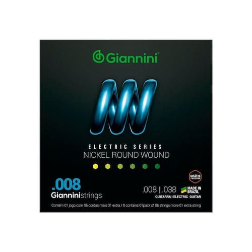 Encordoamento Para Guitarra Elétrica Geegst 8 - .008-.038 [f018] Descrição A série Electric traz toda a sonoridade dos encordoamentos Giannini para a sua guitarra e contra-baixo. O encordoamento para guitarra Giannini GEEGST08 é composto de um núcleo de aço revestido por Níquel, produz um som brilhante e agressivo que atende uma grande variedades de estilos musicais, sendo bem resistente a oxidação e corrosão. Especificações Alma: Aço Revestimento: Níquel Acabamento: Bolinha Comprimento de escala: 648 mm / 25 1/2 ]]>