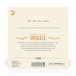Desenvolvidas em parceria com Aquila, as cordas para ukulele D Addario Nyltech, são uma fusão exclusiva de materiais projetados para fornecer a combinação ideal entre timbre quente e forte, tocabilidade confortável e estabilidade de afinação sem precedentes.