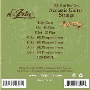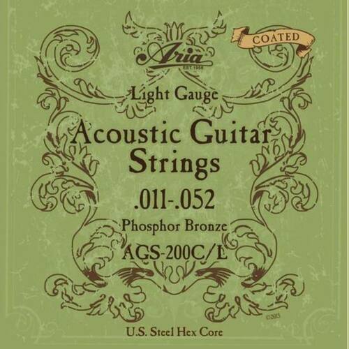 Encordoamento Para Violão Coated .011 Phosphor Bronze O Encordoamento Para Violão Coated .011 Phosphor Bronze AGS200CL da Aria Guitars é um modelo que conta com C.R.T. tratamento Resistente à Corrosão , um processo que protege as superfícies metálicas do contato com oxigênio e umidade. Ao combinar esse processo com os melhores materiais, trefilação precisa e revestimento, cada conjunto da série AGS C mantém o tom familiar das cordas sem revestimento, ao mesmo tempo que prolonga sua durabilidade.