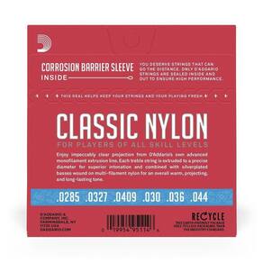 Encordoamento Para Violão D Addario Ej27h Nylon .028 O Encordoamento Para Violão D Addario EJ27H é uma ótima opção para iniciantes e estudantes. O jogo contém 3 primas de nailon translúcido e 3 bordões com enrolamento de fios de cobre com banho de prata sobre uma base de nailon, proporcionando um timbre encorpado e duradouro. As cordas D Addario Student são indicadas para estudantes e iniciantes. Proporcionam um timbre excelente e oferecem grande durabilidade.Aplicação:Violão Tensão:.028 - .044 - Pesada Material:Nylon Pesquisa:daddario|D Addario|nylon|violao|ej27h|e-j27h|