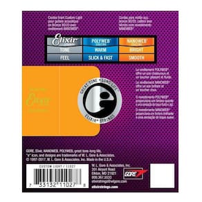 Encordoamento para violão elixir .011 bronze 80/20 nanowebAs cordas elixir® 80/20 bronze para violão aço com revestimento nanoweb possuem timbre vivo e cristalino, além da vida longa do timbre que os músicos esperam de elixir strings. - única marca que oferece revestimento ultrafino que cobre toda a corda, mantendo os espaços entre os enrolamentos protegidos da sujeira e oleosidade- vida útil do timbre estendida - músicos nos relatam que o timbre dura mais que o de qualquer outra corda, revestida ou não- desempenho e timbre consistentes - seu instrumento sempre pronto para tocar- pegada natural e suave para seus dedos, melhorando a tocabilidade- menos ruídos indesejáveis - ótimas para o palco e para o estúdio- anti-rust plated plain steel strings previne a oxidação das cordas lisas, prolongando a vida útil do timbre do jogo completo- menos incômodo e gasto de frequentes trocas de cordas, mais tempo para tocarEspecificações técnicas:- marca: elixir- modelo: nanoweb .011 a .052 - 11027- indicações de uso: atende todos os níveis, do iniciante ao profissional.- material: aço e bronze 80/20 com exclusivo revestimento nanoweb- tensão das cordas: .011 / .015 / .022 / .032 / .042 / .052- país de fabricação: estados unidos - importadas no brasil pela izzo instrumentos musicais, com selo de autenticidade- conteúdo da embalagem: kit contendo 6 cordas para violão