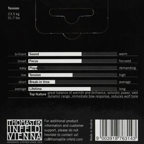 O encordoamento Thomastik Rondo para violino 4/4 é reconhecido por sua excepcional qualidade sonora e durabilidade. Com uma combinação de materiais premium, estas cordas produzem um som rico, equilibrado e expressivo, ideal para músicos exigentes. Sua resposta rápida e precisa torna-as uma escolha popular entre profissionais que buscam um desempenho de alto nível.