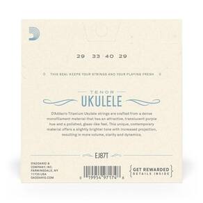 O encordoamento EJ87T para ukulele tenor é composto com a Pro-Arté Titanium. A resposta de harmônicos da Pro-Arté Titanium resulta em um timbre brilhante, proporcionando a sonoridade desejada pelos músicos e que os amantes do Ukulele tanto procuram.?