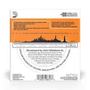 A liga 80/20 Bronze foi originalmente selecionada para instrumentos acústicos por John D Addario Sr. e John D'Angelico por volta de 1930. As 80/20 são populares para gravação gracas ao timbre nítido, encorpado e grave cultuado por muitos músicos. As cordas são enroladas em um núcleo de aço com alta concentração de carbono resultando em um som brilhante com excelente timbre.