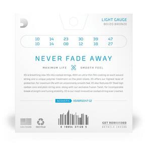 A D Addario XS 80/20 Bronze para violao aço representa o inicio de uma nova era em cordas revestidas. Com seu revestimento ultrafino em cada corda espiralada e tratamento de polímero exclusivo nas cordas lisas, a XS oferece durabilidade extrema com o mais alto nível de protecao, além de um toque surpreendentemente suave. Nossa exclusiva tecnologia Fusion Twist reduz o atrito da corda com o nut, assim você passa mais tempo tocando e menos tempo afinando. O consagrado nucleo NY D'Addario, com alta concentração de carbono, produz resistência e estabilidade de afinação incomparáveis. XS e a corda revestida mais inovadora ja criada.?