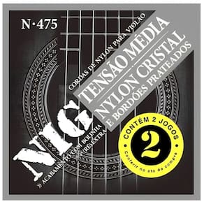 Encordoamento Violão Nylon Tensão Média Nig N475 .028” Kit 2 JogosAs cordas Nig proporcionam o timbre e brilho que você procura para o seu violãoCordas primas (lisas) monofilamento de nylon cristal.Bordões encapados com bronze 80/15 sobre monofilamento de nylon- Acabamento com bolinha, 4º (Ré) Extra.**Embalagem Econômica contem 2 jogos de cordas completos + 2 Cordas (4º Ré Extra)** Especificações:Medidas: 028”/.043”Tensão: MédiaAcabamento com bolinha4º Ré extraContém 06 cordasNova Fórmula;Calibres e tensões internacionais;Mais som, brilho e durabilidade;Bordões: PrateadosPrimas: Nylon Cristal *Imagens Ilustrativas*