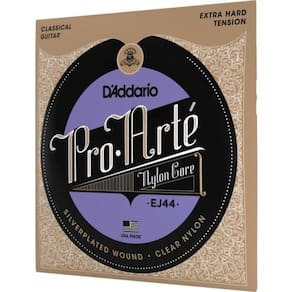 Encordoamento Violão Nylon Tensão Suer Alta Pro-arte Nylon Core Ej44 D Addario [f002] O Encordoamento Para Violão D Addario EJ44 é um modelo conhecido pela sua qualidade. Desenvolvidas em nylon revestido de prata produzem um som penetrante, equilibrado com um timbre insuperável. Além de garantir maior durabilidade. Atendendo assim, os requisitos dos mais conhecidos padrões de afinação, acertando em cheio no gosto dos músicos mais exigentes. Sendo assim, primeira opção entre os maiores profissionais do ramo. Aplicação:Violão Tensão:.029 - .045 - Extra Pesada Material:Nylon Pesquisa:daddario D Addario d.addario daddario pesada ej44 ej-44