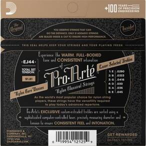 Encordoamento Violão Nylon Tensão Suer Alta Pro-arte Nylon Core Ej44 D Addario [f002] O Encordoamento Para Violão D Addario EJ44 é um modelo conhecido pela sua qualidade. Desenvolvidas em nylon revestido de prata produzem um som penetrante, equilibrado com um timbre insuperável. Além de garantir maior durabilidade. Atendendo assim, os requisitos dos mais conhecidos padrões de afinação, acertando em cheio no gosto dos músicos mais exigentes. Sendo assim, primeira opção entre os maiores profissionais do ramo. Aplicação:Violão Tensão:.029 - .045 - Extra Pesada Material:Nylon Pesquisa:daddario D Addario d.addario daddario pesada ej44 ej-44