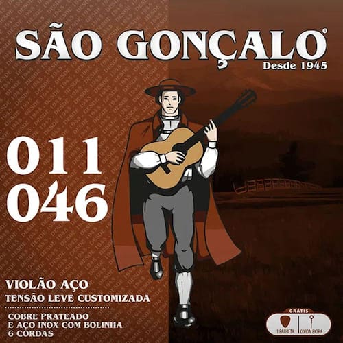 As cordas de violão São Gonçalo oferecem uma afinação precisa e durável. Esse encordoamento de aço revestido em cobre prateado vem com bolinhas, que servem para prender as cordas ao instrumento e facilitar a identificação de cada uma delas.
