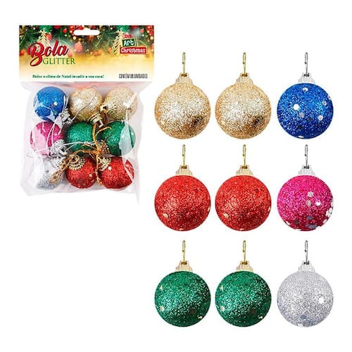 Contém: 09 un - enfeites bola glitter de natal coloridas 3cm.