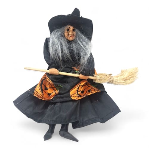 Confeccionado em resina de alta qualidade, atóxica e sem cheiro peculiar Bruxa feita a mão, há um cordão preto na parte de trás da boneca, você pode pendurar facilmente na Porta, Wall, Árvore, Perto da Lareira ou em qualquer lugar que você deseja como decoração.