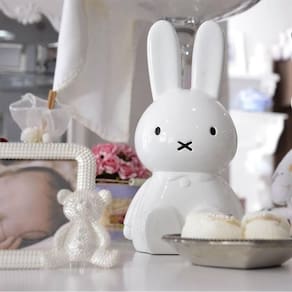 Enfeite Coelha Miffy Laqueada Branca Com um design minimalista e descolado a coelhinha Miffy Laqueada é perfeita para decorar o quarto do bebê Pode ser colocada em mesas de cabeceira ou prateleiras e deixando o ambiente super divertido e fofo Personagem mais conhecida e popular do designer Dick Bruna, foi inicialmente desenhada em 1955.