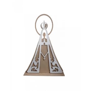 O Enfeite de Mesa Trovarelli Móveis Nossa Senhora Aparecida Arco Natural [F031] é ideal para decoração religiosa em ambientes internos. Produzido em MDF cru de 3mm cortado a laser, oferece bom acabamento para compor altares, mesas e cantinhos de oração. O produto é enviado desmontado em sistema de encaixe simples, proporcionando praticidade na montagem. Indicado para uso em casas, escritórios ou espaços de devoção. A Trovarelli Móveis traz a proposta de um item decorativo funcional com garantia de 6 meses.