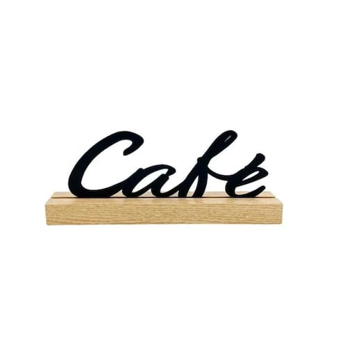 Enfeite de mesa palavra café decorativo sala quarto Enfeite de mesa Item para deixar sua decoração ainda mais charmosa Perfeito para decorar salas, quartos, vitrines, escritórios, etc. Contém: 1 unidade, sendo um letreiro com a palavra café e um suporte. Composição: madeira e mdf. Cor: madeira e letras na cor preta Dimensões totais aproximadas: café: aproximadamente 20cm largura x 13cm altura x 3cm de comprimento. Marca: Não Informado Ean: 7890029999996