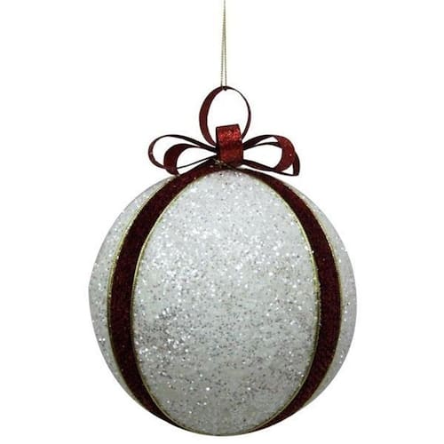 Enfeite De Natal Bola Vermelha Branca Arvore/Mesa/Porta 10Cm