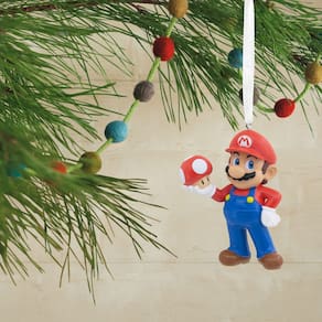 Hallmark Enfeite de Natal Nintendo Super Mario Bros Mario com Super Cogumelo, Decoração Nintendo, Enfeite de Natal para pendurar, presentes - Super Mario! Enfeite de Natal: entre no Reino dos Cogumelos e celebre com todas as suas aventuras favoritas do Super Mario, com o enfeite de Super Mario com Super Cogumelo da Hallmark. Pendure-o com orgulho em sua árvore e deixe o Natal cheio de aventuras! - Decorações de Natal: os ornamentos Hallmark são uma ótima maneira de comemorar hobbies, eventos da vida e interesses individuais em filmes, jogos e muito mais. Cada ornamento festivo e colecionável é perfeito para compartilhar com a família e amigos. - Artesanato de alta qualidade: este ornamento colecionável de lembrança Hallmark é feito de resina resistente e apresenta Super Mario da Nintendo. Este ornamento vem acompanhado de um cabide de barbante prateado para facilitar a exibição em sua casa. - Presente coletivo: este enfeite de Natal Hallmark Mario com super cogumelo é um presente brilhante para familiares e amigos que amam Nintendo, Super Mario Bros e é o presente perfeito para um aniversário, Natal e para adicionar à sua coleção Harry Potter. - Tamanho compacto: projetado para caber perfeitamente no seu espaço festivo, este enfeite de Natal Hallmark Super Mario com super cogumelo mede apenas 5 cm por 7,1 cm por 3,3 cm, o complemento ideal para as decorações de Natal com tema de jogo enquanto ainda se destaca. - Este não é um brinquedo. Apenas para uso decorativo
