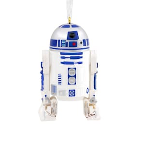 Hallmark Enfeite de Natal Star Wars R2-D2 - Traga diversão intergalática para a temporada de férias com este ornamento de R2-D2. O engenhoso andróide astromecânico é um ótimo complemento para uma árvore ou exibição de Natal com tema Star Wars. - Ótima ideia de presente de Natal para fãs da saga Star Wars e do heroico droide R2-D2. - O ornamento de resina está pronto para pendurar na sua árvore de Natal com um gancho de fixação. - Compra inclui: Um enfeite de árvore de Natal Hallmark embalado em uma caixa. - Tamanho aproximado do ornamento. : 1,25 x 3 x 1