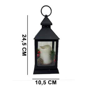 Toque moderno e sofisticado para sua casa! O lampião decorativo preto com vela de LED traz um ar contemporâneo para a sua decoração. Com arranjos festivos internos, é perfeito para compor ambientes estilosos durante o ano todo. - Vela LED - Funciona à pilha (AA) - Estrutura resistente e acabamento elegante - Ideal para sala, mesa posta ou decoração de Natal