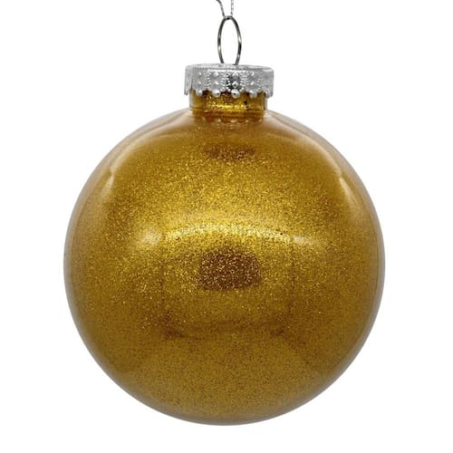 Vickerman Bola de Natal transparente de 15,24 cm com interior de glitter dourado antigo. Este item vem com 4 ornamentos por unidade.