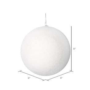 Enfeite de Natal Vickerman de 8", bola flocada, acabamento branco flocado, plástico inquebrável, decoração de árvore de Natal natalina — o plástico inquebrável durará por muitos anos. Seguro para crianças e animais de estimação