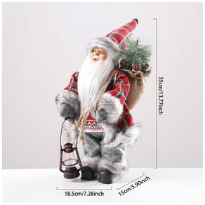 A Estátua de Papai Noel em Pé da Enanal é um item clássico e encantador para decorar sua casa no Natal. Este Papai Noel está vestindo um tradicional casaco de pele em padrão xadrez e botas, carregando um grande saco cheio de enfeites de Natal e segurando uma lamparina de querosene. Com 35cm de altura, este Papai Noel é perfeito para decorar a lareira, mesa, árvore de Natal ou janela. Feito de tecido macio e plástico atóxico, este enfeite é durável e seguro. Além de decorar, também pode ser um presente adorável para crianças e amigos. Deixe a Enanal trazer alegria e diversão para o seu Natal!