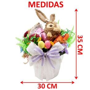 1 Arranjo Coelha De Páscoa Colorido De 35cm;