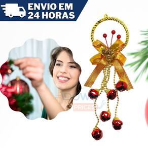 Enfeite de Pendurar Guizo com Laço Decorativo Natal 27cm