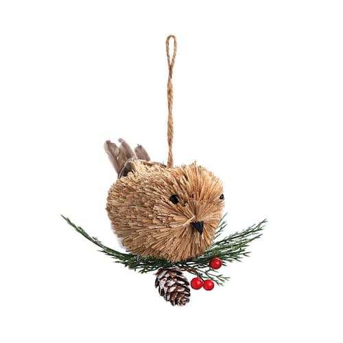 Enfeite Para Pendurar Pássaro Em Galho Com Folhas, Pinha E Frutas. Nas Cores Vermelho, Verde E Marrom.