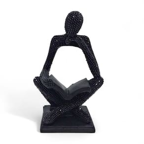 Enfeite de resina Reflexão Com Pedras Brilhantes Preto 13 cm
