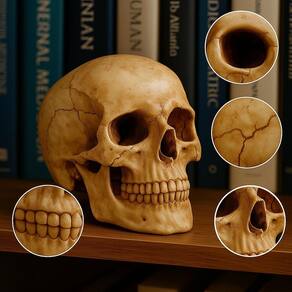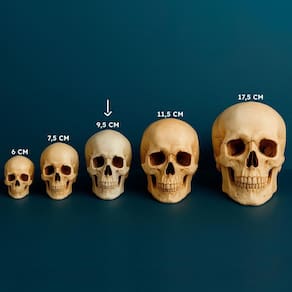 Enfeite Decorativo Cabeça Crânio Caveira Realista Médio 9CM Presente Halloween Anatomia Óssea Destaque sua decoração com os Enfeites de Crânio Humano em Resina - peças que combinam realismo, acabamento refinado e versatilidade para diversos ambientes. Ideais para composições góticas, temáticas de Halloween, vitrines criativas, consultórios alternativos ou até mesmo como objeto de estudo decorativo. Produzidos em resina de alta qualidade, esses crânios impressionam pelo nível de detalhe, inclusive nas versões menores. São perfeitos para composições individuais ou em série. A coloração bege fosca simula ossos reais, oferecendo um visual impactante com toque artesanal. Benefícios: Alta fidelidade anatômica, mesmo nos modelos menores Acabamento detalhado e resistente Ideal para ambientes temáticos, Halloween ou consultórios Produto leve, durável e fácil de posicionar Especificações Técnicas: Material: Resina Cor: Bege única Tamanho: Altura: 9,5cm / Largura: 6cm / Comprimento: 11cm Acabamento: Detalhado artesanal : 90 dias para defeitos de fabricação Cuidados e Conservação: Limpar com pano seco Evitar exposição direta à umidade extrema Manter em ambiente arejado para preservar o acabamento Garanta já o seu Decore com personalidade, impacto visual e qualidade superior. Cada peça é única e feita para impressionar. Marca: Não Informado Ean: 7898723833202