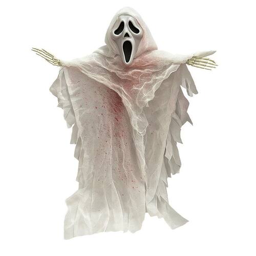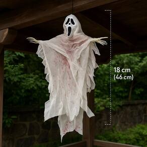 Fantasma de Halloween Pendurado com Máscara - 46cm Decoração assustadora perfeita para o Halloween Este fantasma pendurado possui 46cm de altura, com tecido branco esfarrapado manchado de vermelho, criando um efeito arrepiante. A máscara estilo grito e as mãos esqueléticas adicionam realismo e impacto visual à peça. Ideal para pendurar em varandas, árvores, portas ou ambientes internos, transformando qualquer espaço em um cenário assustador. Características: Altura: 46 cm Com cordão para pendurar Tecido leve com acabamento envelhecido Máscara com expressão de susto Decoração temática para Halloween Assuste e encante seus convidados com esse item decorativo sinistro Marca: Não Informado Ean: 7908605037960