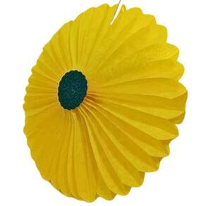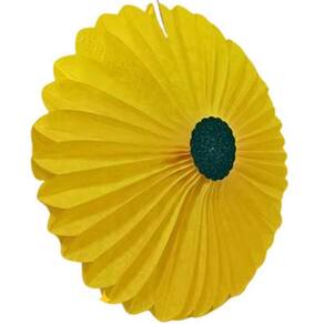 Material: Papel seda, que oferece leveza e um efeito visual Vibrantes: A cor amarela do girassol traz um toque alegre, combinando perfeitamente com a temática das festas ácil de Montar: Simples de abrir e pendurar, facilitando a decoração do ambiente.