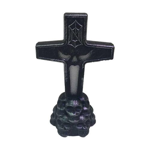 Transforme seu espaço em um ambiente digno das lendas mais sombrias com a Lápide de Cruz com Luz Decorativo de Mesa para Halloween. Deixe sua imaginação correr solta enquanto o brilho trêmulo da cruz ilumina os cantos mais obscuros da sua imaginação. Prepare-se para uma decoração que irá arrepiar a espinha e intrigar os curiosos!