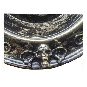 As pequenas caveiras estrategicamente posicionadas ao redor da moldura contam uma história sombria por si mesmas. Elas podem muito bem representar as vítimas que não conseguiram resistir aos sustos ardilosos do homem velho e agora permanecem como testemunhas eternas de seu terrível destino.
