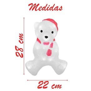 Enfeite Iluminado Natal Urso Polar Natalino Led Acrílico 28cm 220v