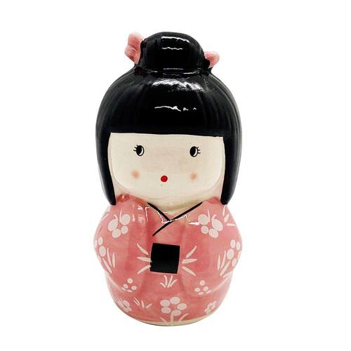 Enfeite decorativo de cerâmica no formato de boneca japonesa Kimono Kokeshi Estátua