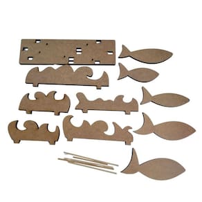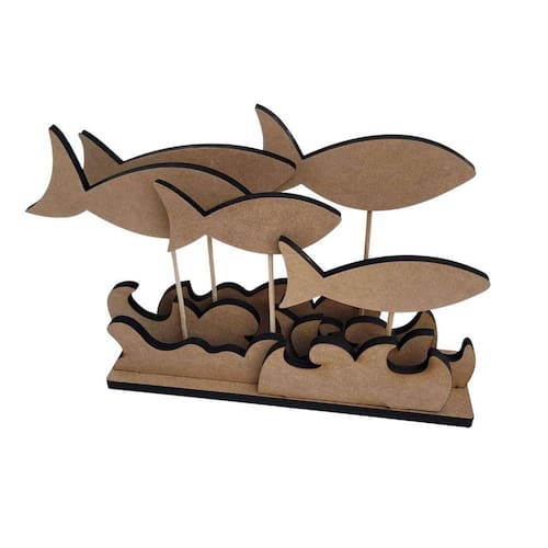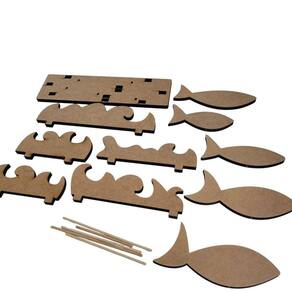 Enfeite de Mesa com cardume de peixes e ondas decor para tema náutico. Acompanha base com furos para encaixar as ondas e os peixes c/palitos. feito em MDF robusco de 9mm cortado a laser com precisão;