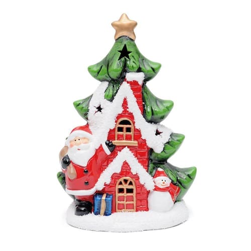 Casa Em Resina C/ LED Papai Noel E Pinheiro 18x12x9cm 1 Unid 1020791