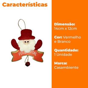 Enfeite de Natal com Placa e Sino Papai Noel - Casambiente NATAL109-Noel Enfeite Natalino para Porta com Placa - Casambiente Feito em alta qualidade e com um ótimo acabamento, o Enfeite Decorativo de Natal com Placa e Sino Papai Noel da Casambiente é feito para você que gosta de trazer o espírito natalino para dentro do seu lar, desde a porta de entrada até o mínimos detalhes. O enfeite Decorativo de Natal com Placa e Sino Papai Noel, conta com uma corda para ser pendurado e possui aproximadamente 15cm de largura com 12cm de comprimento. Com a placa decorativa de natal, você pode pendurar na entrada de sua casa, na sua ávore de natal, em suas paredes ou onde sua imaginação permetir e tornar sua casa ainda mais decorada, com o Enfeite Decorativo de Natal com Placa e Sino Papai Noel Dimensões: Largura: 15cm Comprimento: 12cm Características: Marca: Casambiente Referência: NATAL109 Cor: Vermelho, Branco e Marrom Quantidade: 1 unidade Imagens Ilustrativas