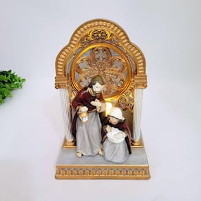 Além disso, o Sagrada Família Portal Com Luz 24X15X10M Enfeite De Natal é um presente maravilhoso para aqueles que valorizam a fé e a família. Feito de resina, ele possui cores como cinza e dourado, e funciona com 2 pilhas AAA não inclusas .