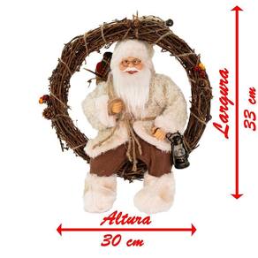 Cor: ;Branco e Marrom;Tamanho: ;Altura 33 cm X 30 de Largura;Material: ;Plástico, Tecido, Pelúcia e cipó;