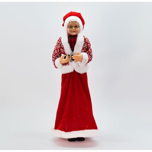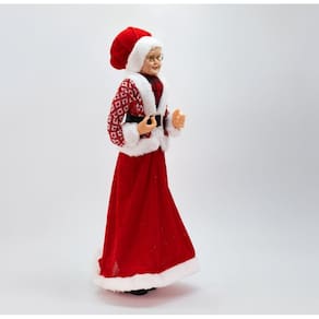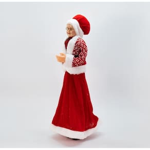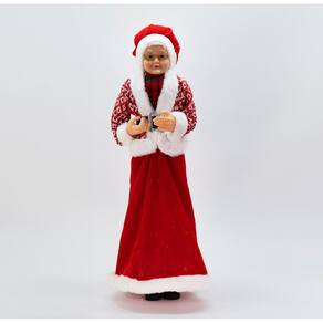 Adorável peça decorativa para o Natal! Com sua postura e expressão amigável, esta Mamãe Noel transmite um ar de alegria e generosidade. Vestido com seu clássico traje vermelho e branco, com detalhes prateados, ela adiciona um toque acolhedor e festivo a qualquer ambiente.